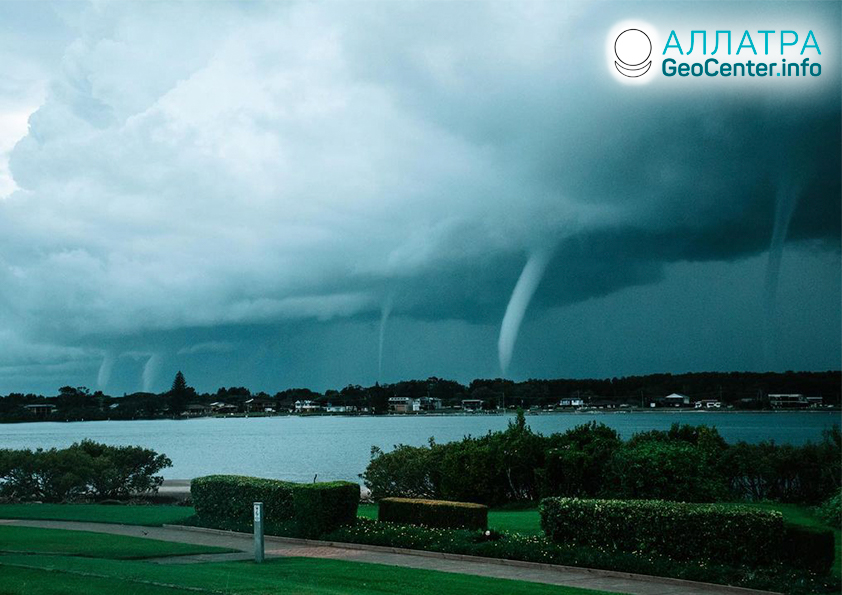 4. mája sa obyvatelia austrálskeho pobrežného mestečka Harrington, ležiaceho v štáte Nový Južný Wales, stali svedkami súčasného vzniku piatich vodných smrští.